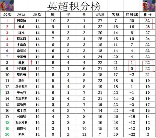 积分榜方面,本轮比赛全部结束,阿森纳和曼城都赢了球,阿森纳就还是领先曼城5分稳居榜首。切尔西被维拉超过3分跌到第4,曼联今天是有机会追上切尔西的,但是遭西汉姆联绝平后,他们只是追上利物浦,并以净胜球优势超过利物浦升至第8。英超现在争4挺激烈的,从第4的切尔西到第10的埃弗顿,7队分差只在3分之间。