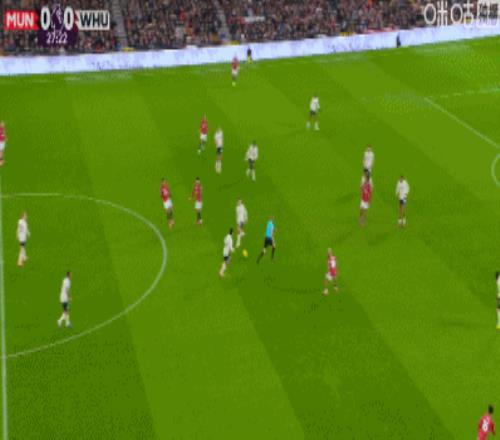 曼联10天前在主场输给了埃弗顿,不过他们上周末客场击败水晶宫及时止住颓势,今天回到主场对阵降级区的西汉姆联,是曼联冲击赛季第2连胜的大好机会(上一次连胜是在一个多月前客场击败利物浦,主场战胜布莱顿)。开场后曼联并不能完全占据场上优势,第5分钟,西汉姆联右路快速反击,曼联旧将万比萨卡插上下底倒三角回传,前点众人都将球漏了过去,费尔南德斯禁区弧顶处获得很好的机会,只是他迎球大力推射,被卡塞米罗奋力将球挡下。第27分钟,曼联全线压上,迪亚洛禁区右侧接球强行突破下底倒三角挑传门前,齐尔克泽小禁区内一步抢点用大腿内侧一顶,皮球直奔球门而去,曼联旧将万比萨卡门线上救险头槌解围将球顶了出来,库尼亚抢到第2落点倒挂金钩打门也被挡出,B费点球点前抢到第三落点,迎球凌空一撩,皮球击中门柱弹出底线,西汉姆联逃过一劫。