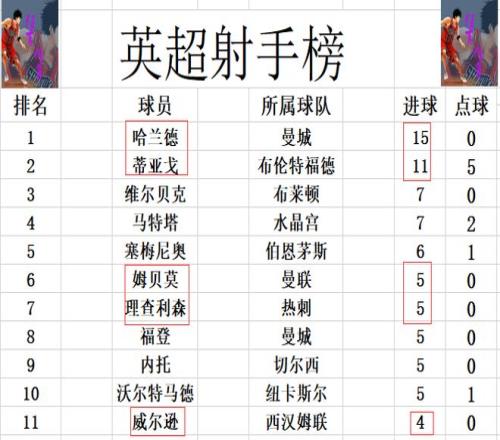 射手榜方面,哈兰德15球领跑,蒂亚戈11球紧随其后,维尔贝克,马特塔7球并列第3。姆贝莫今天没有进球,还是和理查利森,福登,内托等人5球刚好挤入前十。威尔逊今天也未能进球,还是差1球才能进前十。