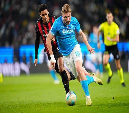 在利雅得的沙特国王大学球场,霍伊伦和恩昆库的对比,以一种最鲜明的方式呈现出来。丹麦前锋传射建功,毫无悬念地当选本场最佳,以真正属于中锋的方式击溃了他本可加盟的“潜东家”。第39分钟,他接到斯皮纳佐拉的传球,在左侧底线附近持球,吸引了德温特的防守,随后突然转身,用左脚将皮球送向门前,迈尼昂狼狈地扑了一下,却正好将球送到内雷斯脚下,巴西人轻松铲射得手,为那不勒斯首开纪录。值得一提的是,那不勒斯最近四场胜利,都是面对强敌(亚特兰大、罗马、尤文、米兰),霍伊伦-内雷斯这对组合每场都有进球连线(即便此球被迈尼昂碰到,统计层面不算霍伊伦的助攻),是名副其实的好搭档。