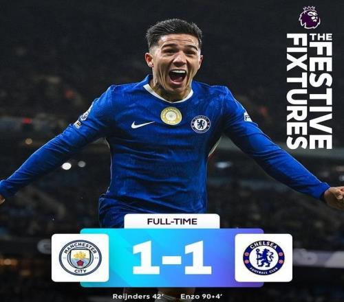 下半场补时第4分钟,古斯托右侧传中,恩佐将球踢入门中,切尔西最后时刻扳平,1-1!