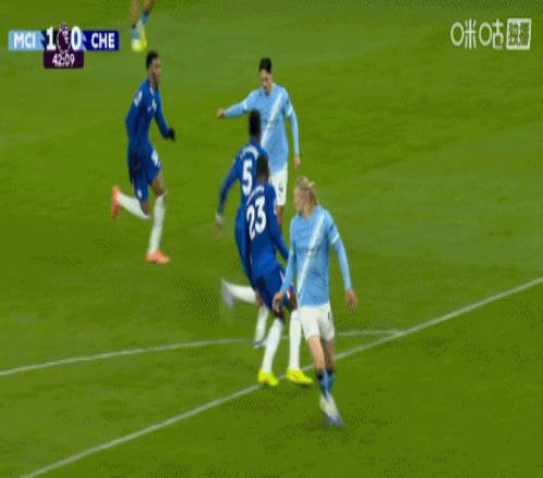上半场第42分钟,曼城进攻配合,哈兰德做球,赖因德斯跟进劲射破门,1-0!